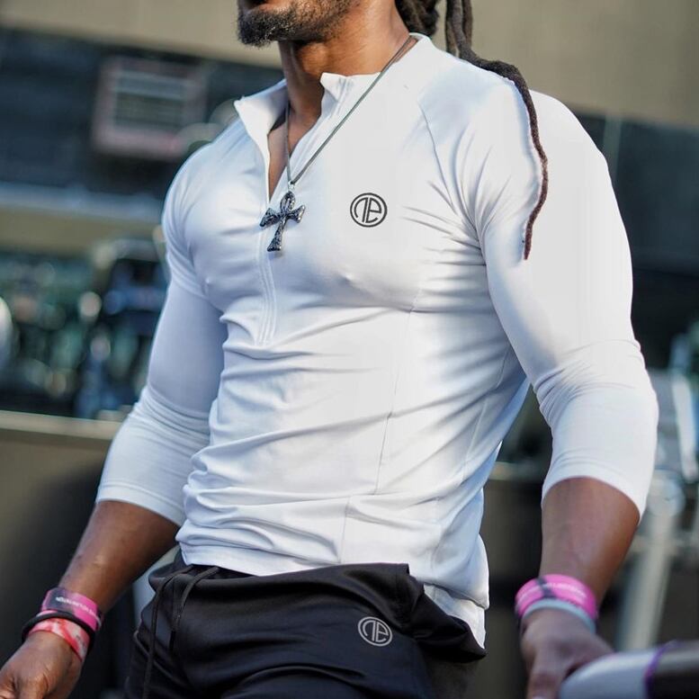 ストレッチ性に優れた素材を採用したハーフジップTシャツ。